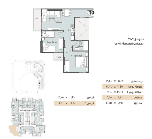 نموذج 10 عمارة 42 المساحة 96 متر .