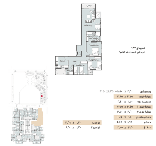 نموذج 2 عمارة 42 مساحة 172 متر