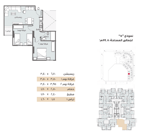 نموذج 5 عمارة 45 مساحة 89.5 متر