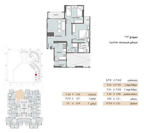 نموذج 6 العمارة 42 المساحة 112.5 متر .