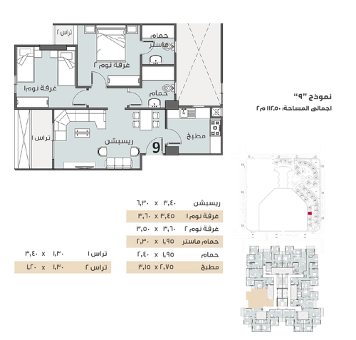 نموذج 9 عمارة 42 مساحة 112.5 متر .